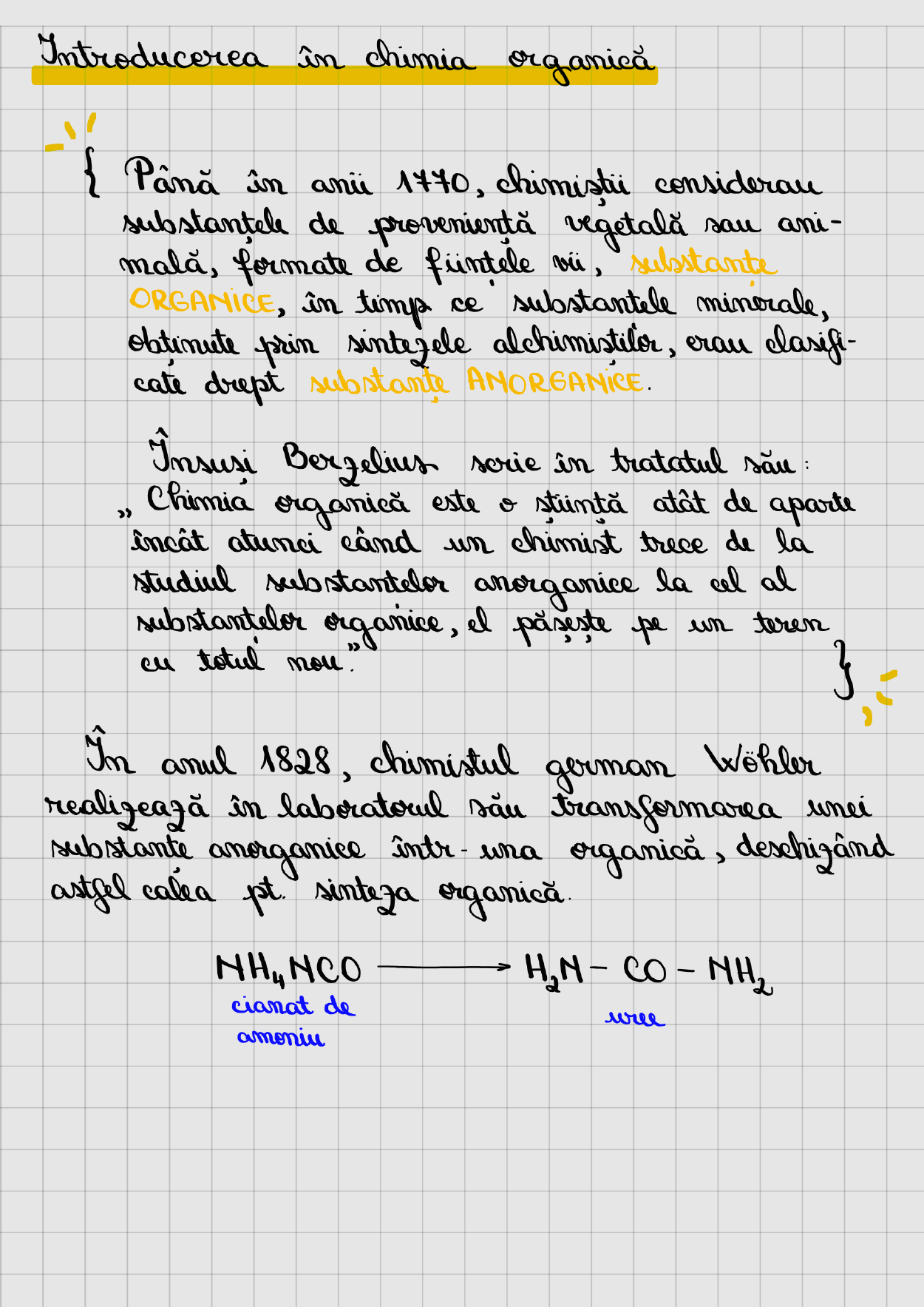 Chimia organică este ramura științei care studiază structura, proprietățile, reacțiile și compoziția compușilor organici, constituiți în cea mai mare parte din carbon și hidrogen, împreună cu alte elemente precum oxigenul, azotul, sulful și fosforul. Pentru mulți, acest domeniu fascinant este o poartă către înțelegerea substanțelor care constituie lumea din jurul nostru, de la medicamentele pe care le luăm, la plasticurile cu care interacționăm zilnic. Însă pentru a ne aventura în acest domeniu al chimiei, este esențial să înțelegem nu doar natura și comportamentul atomilor și moleculelor, ci și istoria fascinantă din spatele dezvoltării acestui câmp vast de cercetare. În această lucrare, ne propunem să explorăm evoluția conceptelor și descoperirilor în chimia organică, începând de la pionierii care au deschis drumul către înțelegerea fundamentelor acestui domeniu, până la explorarea claselor majore de compuși organici precum alcanii, alchinele, alchenele și alcadienele.